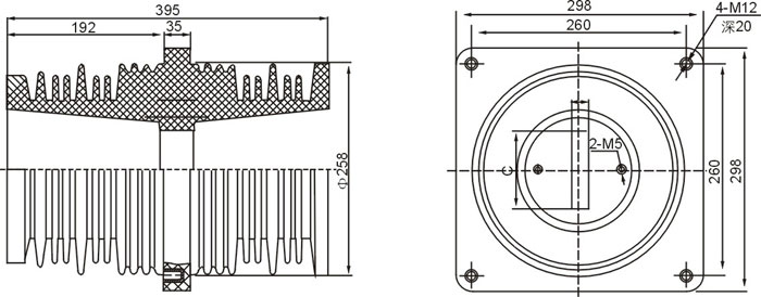 40.5KV穿墻套管為環(huán)氧樹脂APG工藝壓力凝膠成型結(jié)構(gòu),外形結(jié)構(gòu)尺寸大小為128(100×100)mm、高225mm。主要適用于額定電壓為10KV及以下的成套設(shè)備中,作絕緣隔離和聯(lián)接過(guò)度之用。套管耐污及潮濕,無(wú)需特別維護(hù),只需定期地清理表面污質(zhì)。安裝時(shí)母排從孔內(nèi)穿過(guò)。