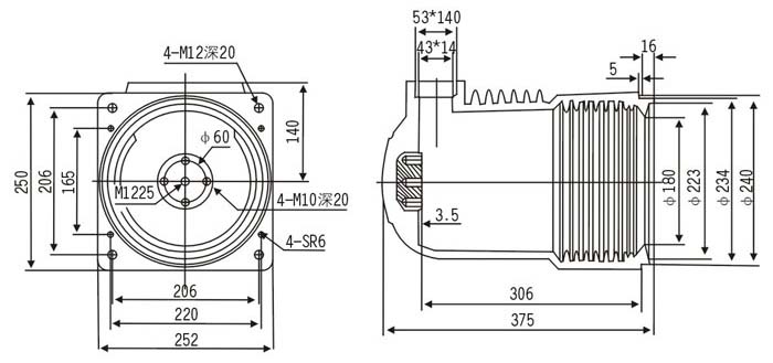 觸頭盒采用環(huán)氧樹脂結(jié)構(gòu),用于各種手車式開關柜,起絕緣隔離和聯(lián)接過渡作用。 安裝中心距離為250mm,適用額定電壓10KV,電流2500A~3150A。觸頭盒在額定電流下,長期工作下出線端部溫升不超過65℃。