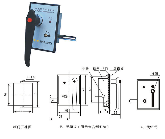 DSN-BM型系列戶內(nèi)電磁鎖是一種防止高壓開關設備電器誤操作的電控機構聯(lián)鎖裝置。主要適用于戶內(nèi)高壓開關設備的前后柜門、隔離開關、斷路器、接地線等需要閉鎖部位實現(xiàn)聯(lián)鎖,防止誤操作的發(fā)生,是發(fā)電和供電部門不可缺少的閉鎖裝置。另外,為適應綜合自動化變電站的需要,該系列電磁鎖亦增加了鎖內(nèi)輔助接點。能在鎖具的合分位置給用戶提供一對相應的開關接點,便于用戶鎖具相互聯(lián)鎖及綜合自動化采樣,避免了走空和,是現(xiàn)代化變電站設備理想的閉鎖裝置。專利產(chǎn)品“電控鎖”解決了綜合自動化變電站中機械程序鎖鑰匙無法進行控制管理的缺陷。