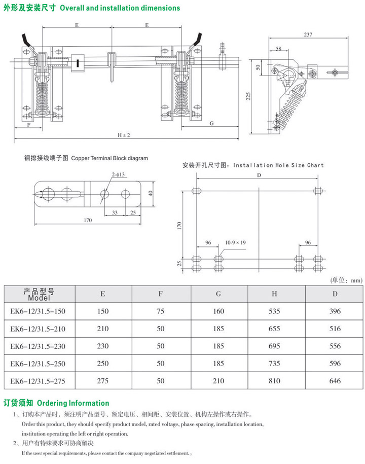 EK6-12系列戶內(nèi)高壓接地開關(guān)是我公司在引進德國CALOK.EMAG公司EK6型接地開關(guān)改進后全部國產(chǎn)化的并具有國內(nèi)先進水平的產(chǎn)品。其性能符合GB1985-89《交流高壓隔離開關(guān)和接地開關(guān)》及IEC129的要求。適用于戶內(nèi)3-12kV交流50Hz的電力系統(tǒng)中,可與各種高壓開關(guān)柜配套使用,作為高壓電器設(shè)備檢修時的接地保護。