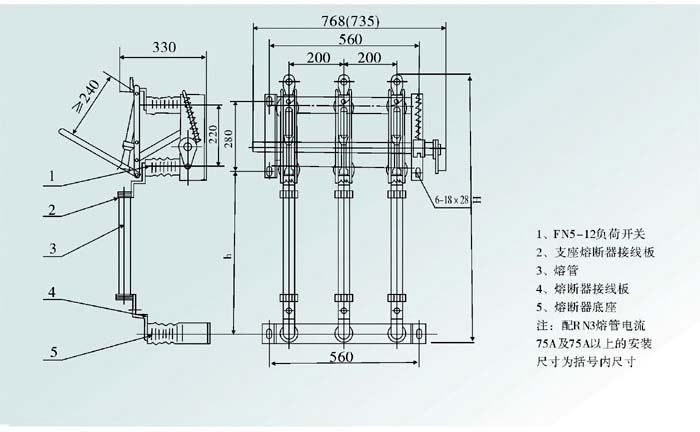 FN5-12戶內(nèi)交流高壓負荷開關(guān)(以下簡稱負荷開關(guān)適用于交流50Hz、12kV的網(wǎng)絡(luò)中,作為開斷負荷電流及關(guān)合短路電流之用。帶有熔斷器的負荷開關(guān)可切斷短路電流,作保護開關(guān)之用。