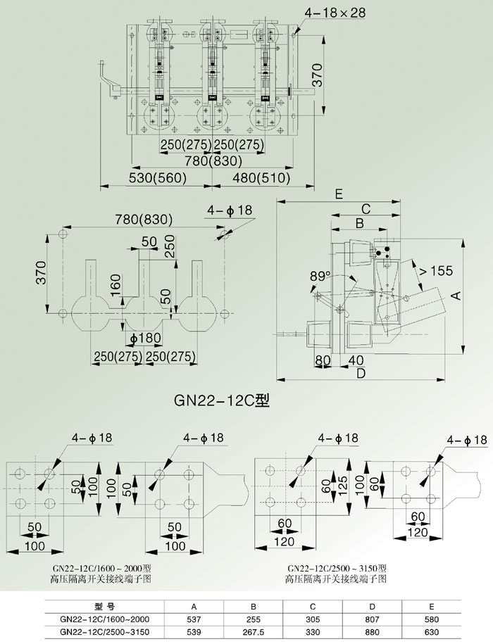 GN22-12(C)大電流產(chǎn)內(nèi)高壓隔離開(kāi)關(guān),適用于額定電壓10KV,三相交流50HZ,電力系統(tǒng)中高壓開(kāi)關(guān)設(shè)備作為有電壓無(wú)負(fù)載的情況下分合電路之用。開(kāi)關(guān)結(jié)構(gòu)設(shè)計(jì)新穎、合理、獨(dú)具一格。它采用了兩步動(dòng)作的鎖緊方式,使開(kāi)關(guān)動(dòng)熱穩(wěn)定性能優(yōu)異,操作力小。它采用了環(huán)氧樹(shù)脂和絕緣子及刷鍍銀等新材料新工藝,使開(kāi)關(guān)導(dǎo)電性能好,體積小,質(zhì)量輕。它的出線端子便于與真空斷路器、油斷路器連接,可縮小開(kāi)關(guān)柜體積,減少過(guò)渡接頭,降低成本。