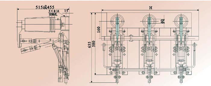 同樣,在分閘時,操動連桿帶動接地開關上的齒輪,沿分閘方向轉動,彈簧裝置儲能,當主軸轉動角度超過45度時,彈簧儲能裝置釋放能量,使接地開關合閘。