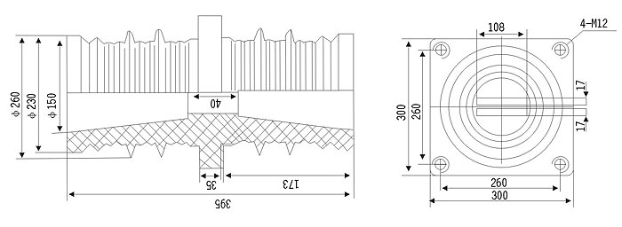 40.5KV穿墻套管為環(huán)氧樹脂APG工藝壓力凝膠成型結構,外形結構尺寸大小為128(100×100)mm、高225mm。主要適用于額定電壓為10KV及以下的成套設備中,作絕緣隔離和聯(lián)接過度之用。套管耐污及潮濕,無需特別維護,只需定期地清理表面污質。安裝時母排從孔內穿過。