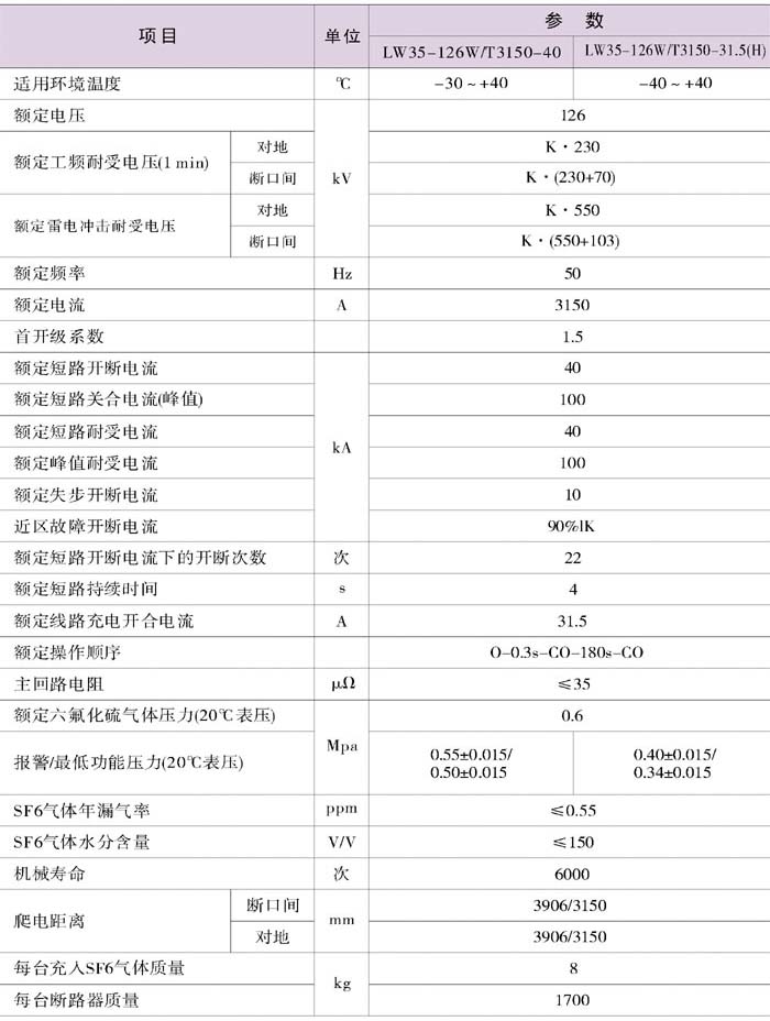 斷路器符合GB1984-2003《高壓交流斷路器》和IEC62271-100-2001《高壓交流斷路器》及QJ/RG.30.03.54-1999《LW36-126自能式斷路器技術(shù)條件》的要求。斷路器以SF6氣體為絕緣和滅弧介質(zhì),采用自能式滅弧原理,配用新型彈簧操動機(jī)構(gòu),具有開斷能力強(qiáng),操作功小,可靠性高的特點(diǎn)。