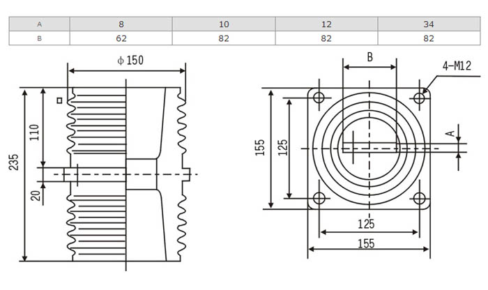 TG1-10Q套管為環(huán)氧樹脂APG工藝壓力凝膠成型結(jié)構(gòu),外形結(jié)構(gòu)尺寸大小為128(100×100)mm、高225mm。主要適用于額定電壓為10KV及以下的成套設(shè)備中,作絕緣隔離和聯(lián)接過度之用。套管耐污及潮濕,無(wú)需特別維護(hù),只需定期地清理表面污質(zhì)。安裝時(shí)母排從孔內(nèi)穿過。