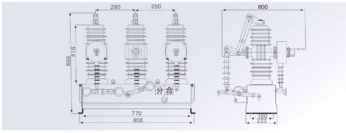 可外加隔離開關(guān),形成可見斷口并可靠聯(lián)鎖,組成組合電器;