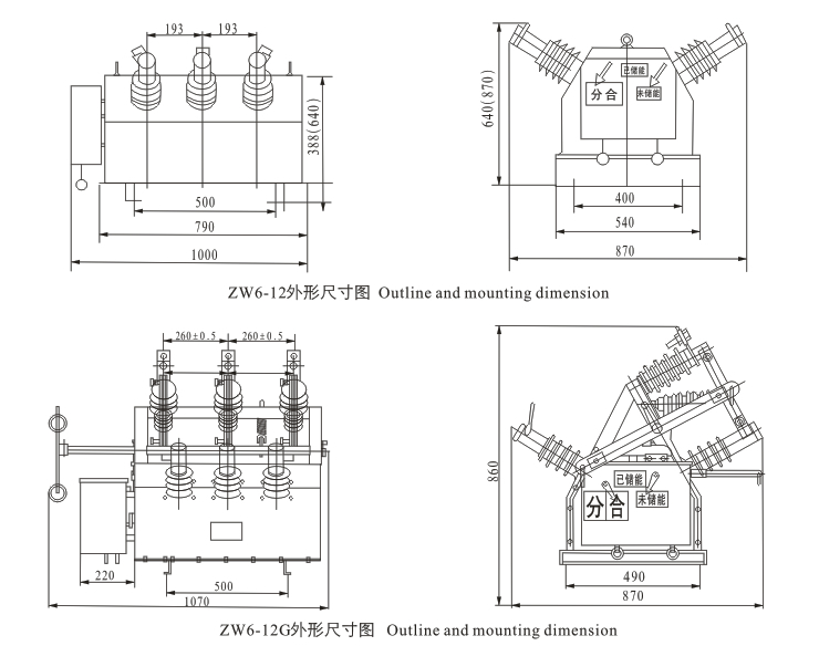 斷路器配用CT23彈簧操動機構,可實現(xiàn)電動儲能、電動分合閘,也可手動儲能和手動分合閘。